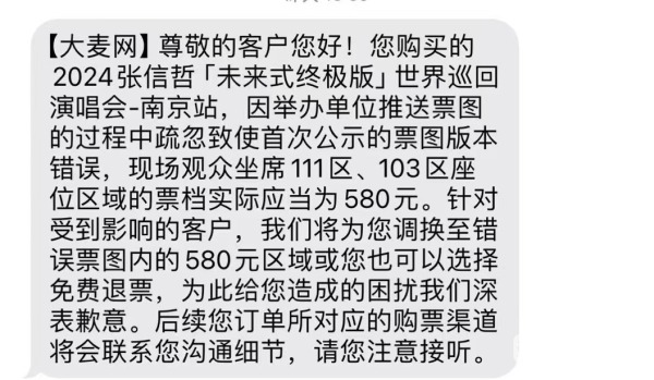 7月6日,著名歌手张信哲将在南京奥体中心举办演唱会,然而,有不少歌迷在大麦网购票后,竟然没有被安排在自己购买的指定区域内,这是怎么回事儿呢?